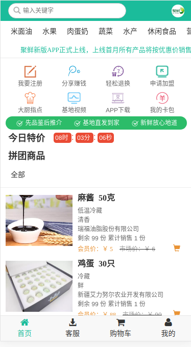聚鲜农产品网上商城是绿色有机农产品互联网商城,通过建立专属基地,为会员提供安全、新鲜、高成熟度、地道食品的体验式生鲜服务平台。